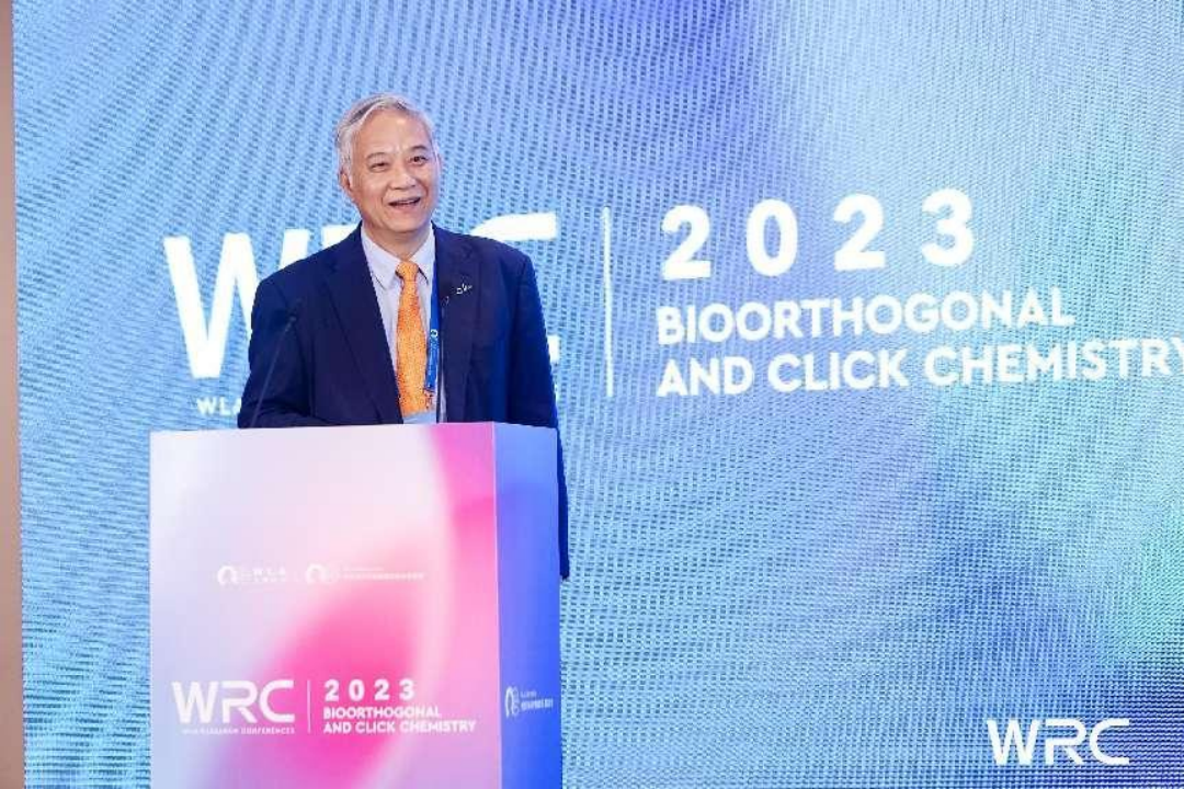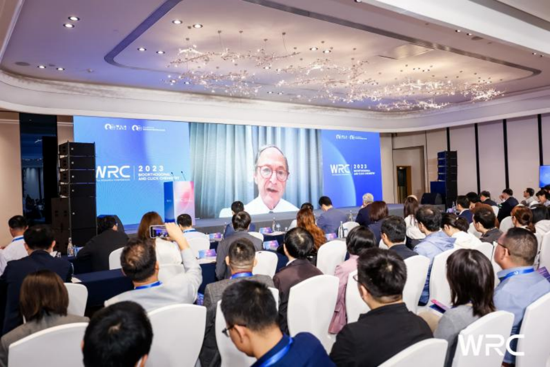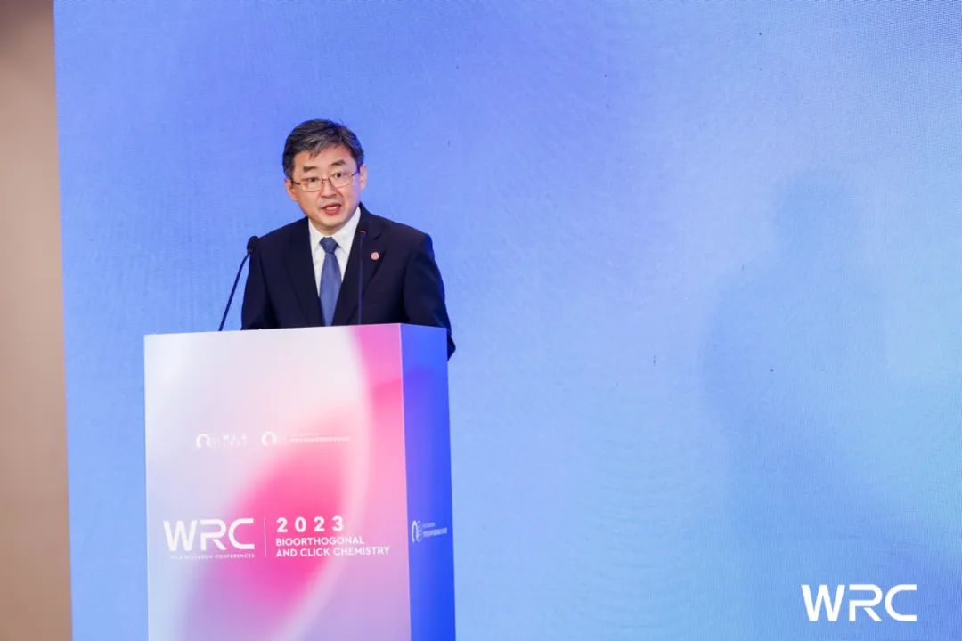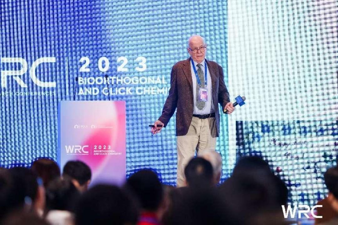 2023年10月15日上午,WRC2023生物正交與點(diǎn)擊化學(xué)學(xué)術(shù)會(huì)議在上海張江雅樂(lè)軒盛大開(kāi)幕。本次會(huì)議由2022&2001年諾貝爾化學(xué)獎(jiǎng)得主卡爾·巴里·夏普利斯(K. Barry Sharpless)、上海交通大學(xué)校長(zhǎng)、中國(guó)科學(xué)院院士丁奎嶺擔(dān)任會(huì)議主席并為會(huì)議致辭。2013年諾貝爾化學(xué)獎(jiǎng)得主邁克爾·萊維特(Michael Levitt)代表主辦方作開(kāi)幕致辭。